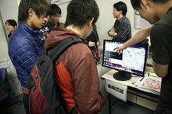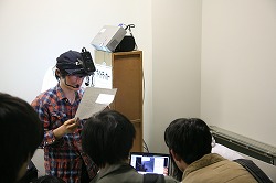 学部1回生から3回生に対して、研究室紹介を行いました。 多くの学部生に参加していただきました。 研究室紹介のプレゼンテーションの他、 リアルタイム画像認識/検索システム、 アイトラッカーを用いた拡張現実アプリケーション、 リアルタイム文字認識システムのデモンストレーションも行い、とても好評でした。
