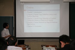 孫 維瀚くんが「Content-Based Copy Detection for Copyright Protection of Line Drawings」というタイトルで公聴会を行いました。