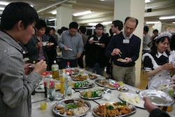 2013年度の知能情報工学科 新入生歓迎会に参加しました。知能情報工学科の学部生、大学院生、先生方が集い、歓談しました。歓迎会では会食会やビンゴ大会を行い、とても楽しい時間を過ごしました。